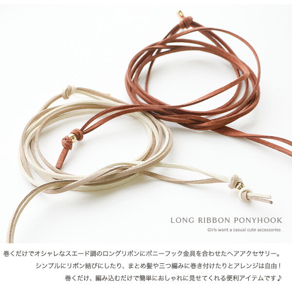 keyword : ポニーフック ヘアフック ヘアピン 紐 リボン ロング アレンジ■□ Item information - 商品説明 - □■ 巻くだけでオシャレなスエード調のロングリボンにポニーフック金具を合わせたヘアアクセサリー。