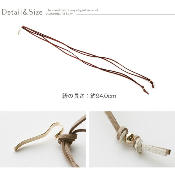 ▼▼こちらもオススメ!! その他ポニーフックはコチラ▼▼ サイズ 紐の長さ:約94.0cm サイズ表記については こちら→ カラー アイボリー / ベージュ / ブラウン / ブラック / アイボリー×ベージュ / ブラウン×ベージュ ネコポス対応 ネコポス配送の詳細は こちら→ 注意点 ※折れやすい素材の為、サイズ調整は破損の原因となりますのでご注意ください。