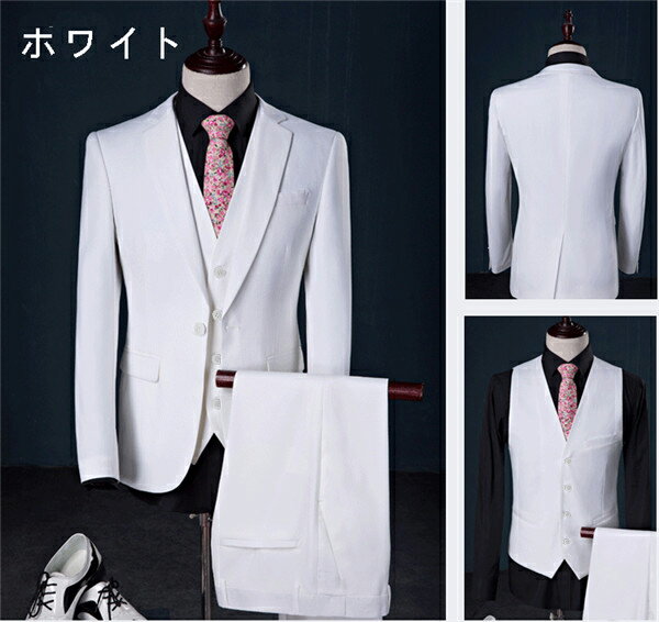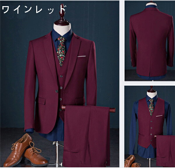 セット内容 ✽.*꙳ ジャケット/ベスト/ズボン (記載のないアクセサリー、小物等は付属しません) 素材 ✽.*꙳ ポリエステルなど カラー ✽.*꙳ ブラック/ワインレッド/ブルー/ネイビー/ホワイト サイズ (cm) ✽.*꙳ ジャケット M/バスト90 着丈約64 袖丈59 肩幅40 L/バスト94 着丈約66 袖丈61 肩幅41 XL/バスト100 着丈約68 袖丈62 肩幅43 2XL/バスト104 着丈約70 袖丈64 肩幅44 3XL/バスト107 着丈約72 袖丈65 肩幅46 4XL/バスト112 着丈約74 袖丈66 肩幅48 5XL/バスト117 着丈約76 袖丈66 肩幅51 6XL/バスト123 着丈約78 袖丈66 肩幅53 ズボン 28/ウエスト73 ズボン丈約103 ワタリ約54 29/ウエスト75 ズボン丈約103 ワタリ約56 30/ウエスト78 ズボン丈約104 ワタリ約57 31/ウエスト81 ズボン丈約105 ワタリ約59 32/ウエスト84 ズボン丈約105 ワタリ約60 33/ウエスト88 ズボン丈約106 ワタリ約62 34/ウエスト91 ズボン丈約108 ワタリ約64 36/ウエスト95 ズボン丈約109 ワタリ約66 38/ウエスト100 ズボン丈約110 ワタリ約68 40/ウエスト106 ズボン丈約110 ワタリ約72 ●ご注意:スリムバージョン商品のため、ワンサイズ上をお勧めいたします。