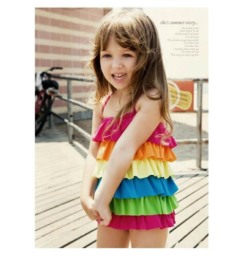 カラフルスイムウェア 水着 女の子 キッズ服 ベビー服 スイミングウェア かわいい おしゃれ プール 夏 海 女の子服 80cm 90cm レインボー フリル キッズ フリルワンピース 即納可 キッズ水着 水着ワンピース 子供水着 6層フリル可愛さ満載 S/0歳/1歳/2歳/キュート