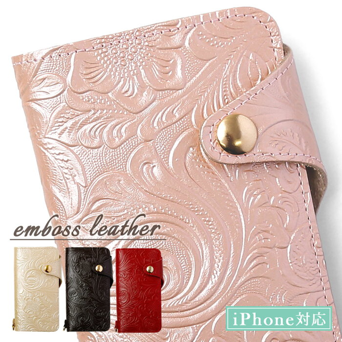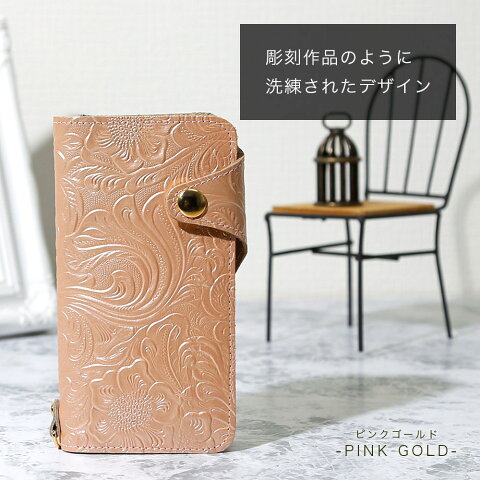 対応機種多機種対応商品説明■厳選した上質な本革の全面にフラワー柄エンボスを施した、大人の気品漂う手帳型スマホケースです。
