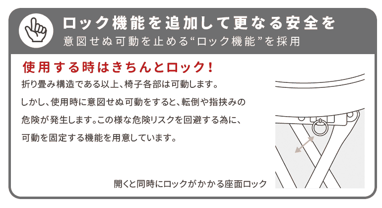 耐荷重 (約)80kg 仕様 座面の裏に折り畳みロック機能付がついております。