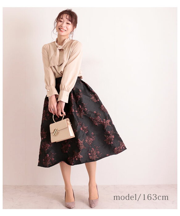 ジャガード生地でふんわりしたシルエットで下半身も気になりません。