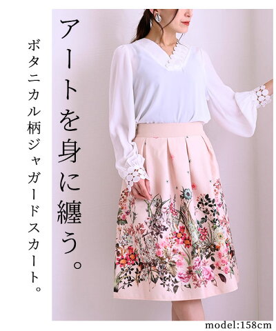ボタニカルジャガードスカートで華やかな色合いのボタニカルプリントがとても映えます。