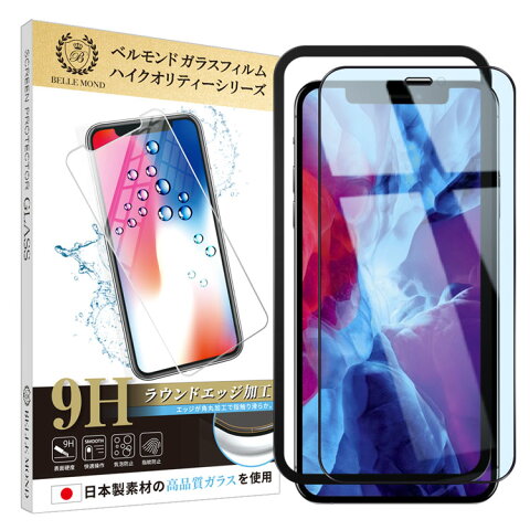 【店内最大30%OFF】iPhone 12 mini 5.4インチ 全面保護 ブルーライトカット ガラスフィルム 日本製素材 ブルーライト軽減 強化ガラス 保護フィルム 【BELLEMOND(ベルモンド)】 iPhone12 mini 5.4 BLBK GF B0110 YFF