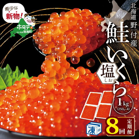 【ふるさと納税】【 年8回 いくら 定期便 毎月 定期 】北海道 産 鮭 イクラ 1kg ( 250g × 4パック ) 8回 産直 計 8kg ( ふるさと納税 イクラ 定期便 ふるさと納税 いくら 定期便 醤油漬け 小分け 大粒 鮭卵 国産 1キロ 8 8ヶ月 8ケ月 8ヵ月 8カ月 8か月 訳あり 送料無料 )
